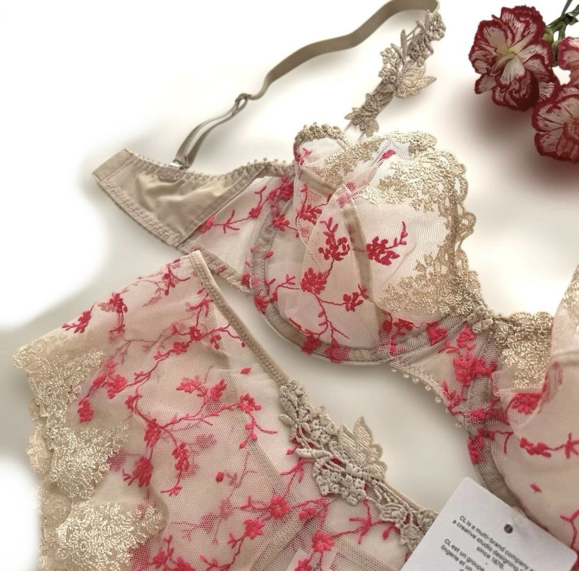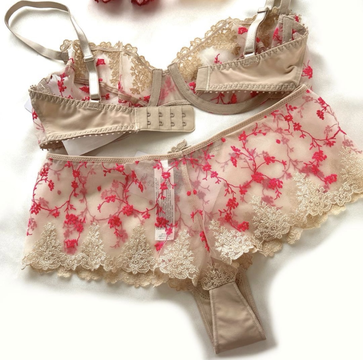 美しいベージュと甘美なピンクのレース